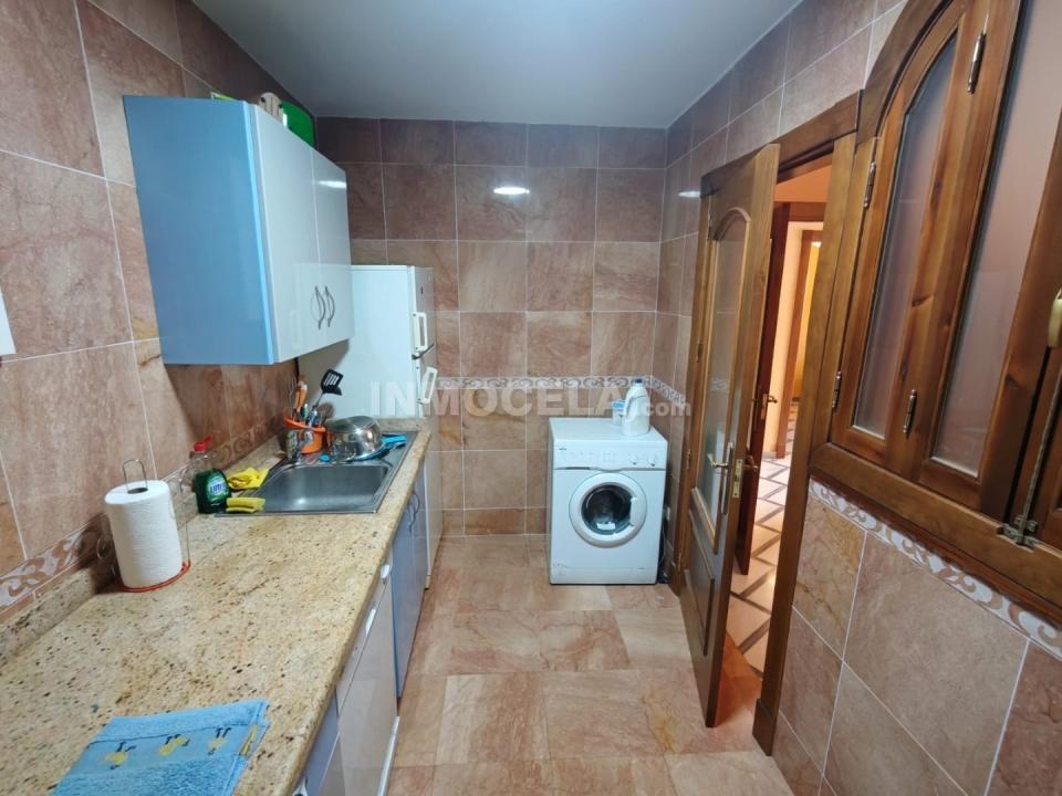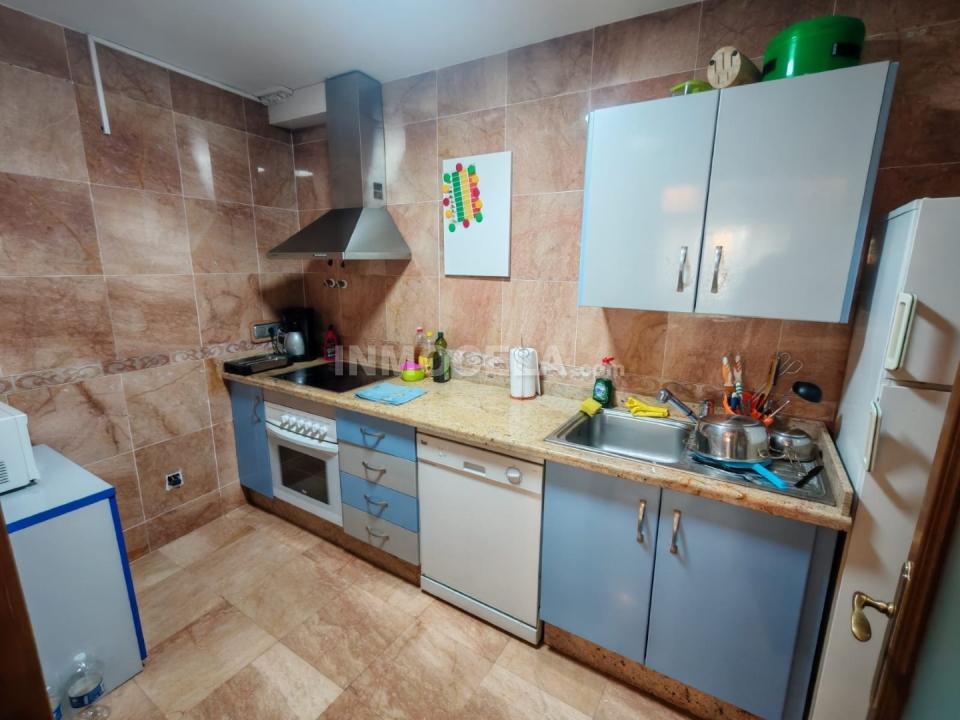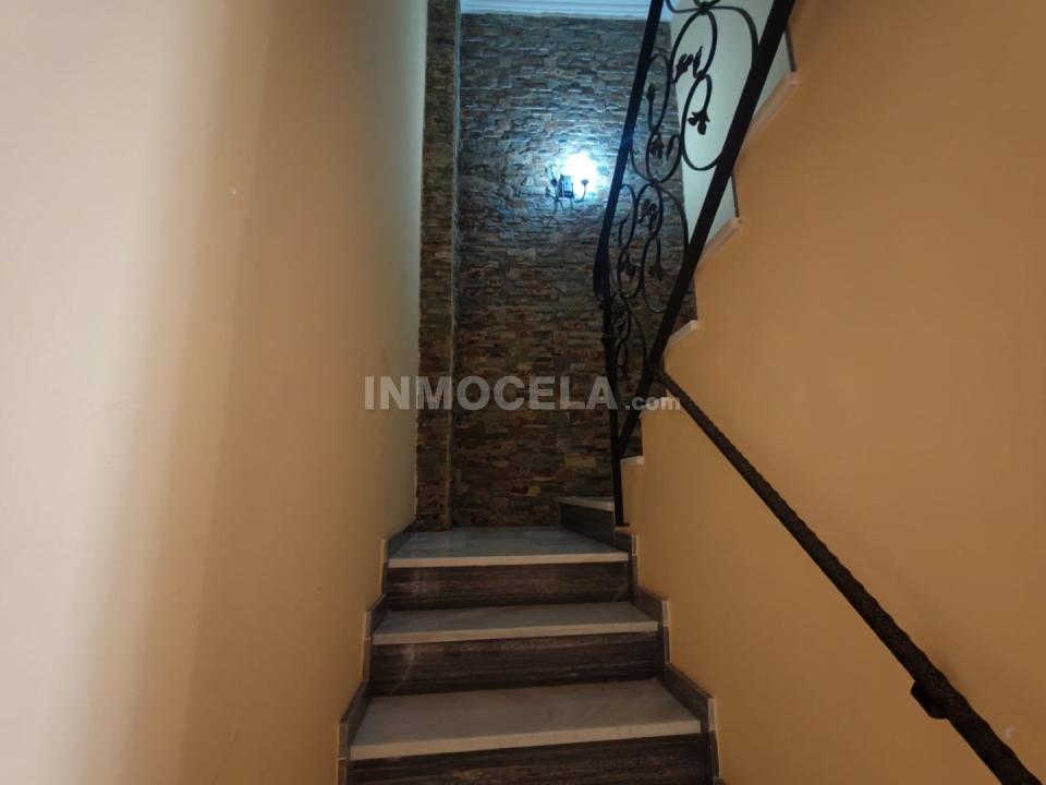 Desde el salón accedemos a una cocina completamente amueblada, decorada con azulejos de mármol que aportan un toque de elegancia y distinción. Bajo las escaleras, la vivienda dispone de un espacio de almacenamiento ideal para guardar enseres del hogar, calzado u otros objetos, aprovechando al máximo cada rincón.
