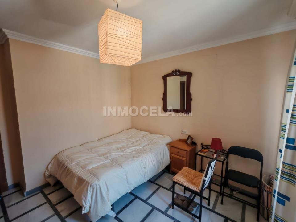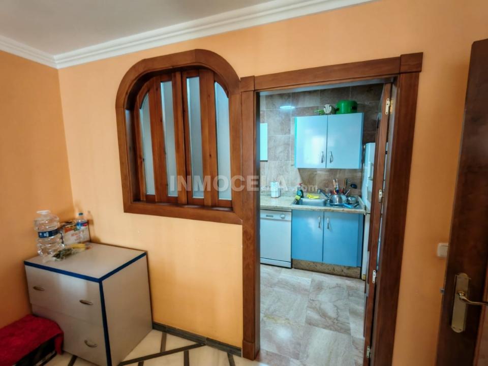 Accedemos a la vivienda por unas escaleras que nos conducen a un acogedor recibidor. A la derecha encontramos un dormitorio amplio, perfecto para invitados o como habitación principal en planta baja, y un baño completo  muy funcional. A la izquierda se sitúa un salón comedor muy luminoso, equipado con aire acondicionado, que crea un ambiente confortable durante todo el año.