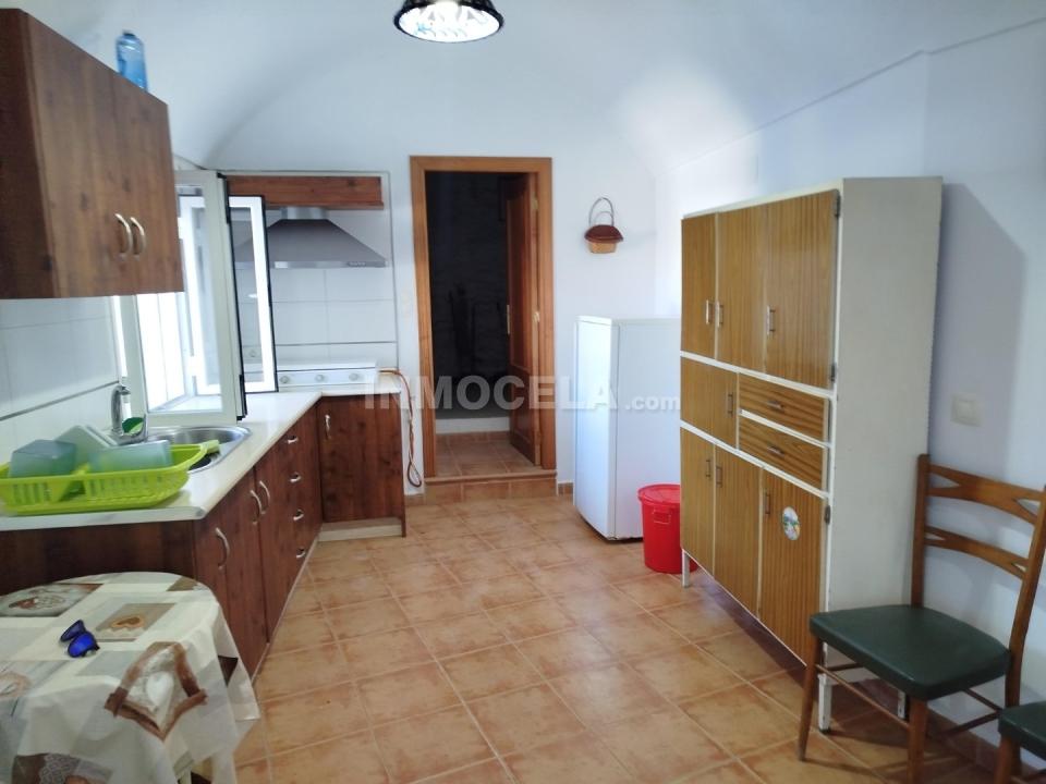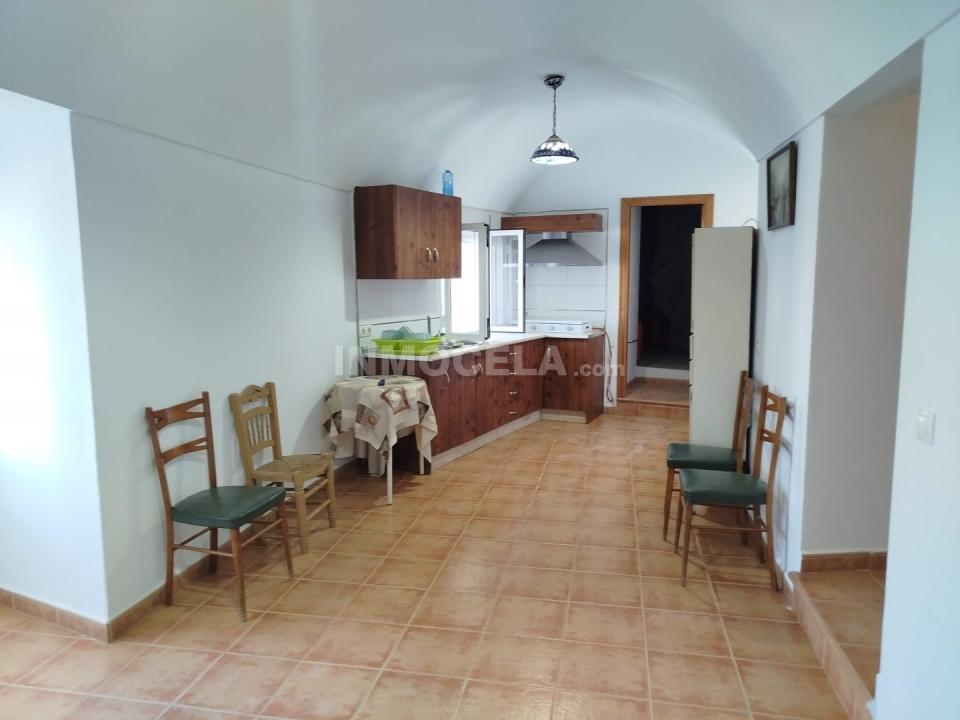 Desde la cocina se accede directamente a la placeta exterior, facilitando la conexión entre interior y exterior. También desde aquí se entra a varias habitaciones tipo cueva, espacios amplios y versátiles que pueden adaptarse fácilmente a las necesidades del comprador: cochera, zona de ocio, bodega, taller, trastero o incluso más dormitorios.