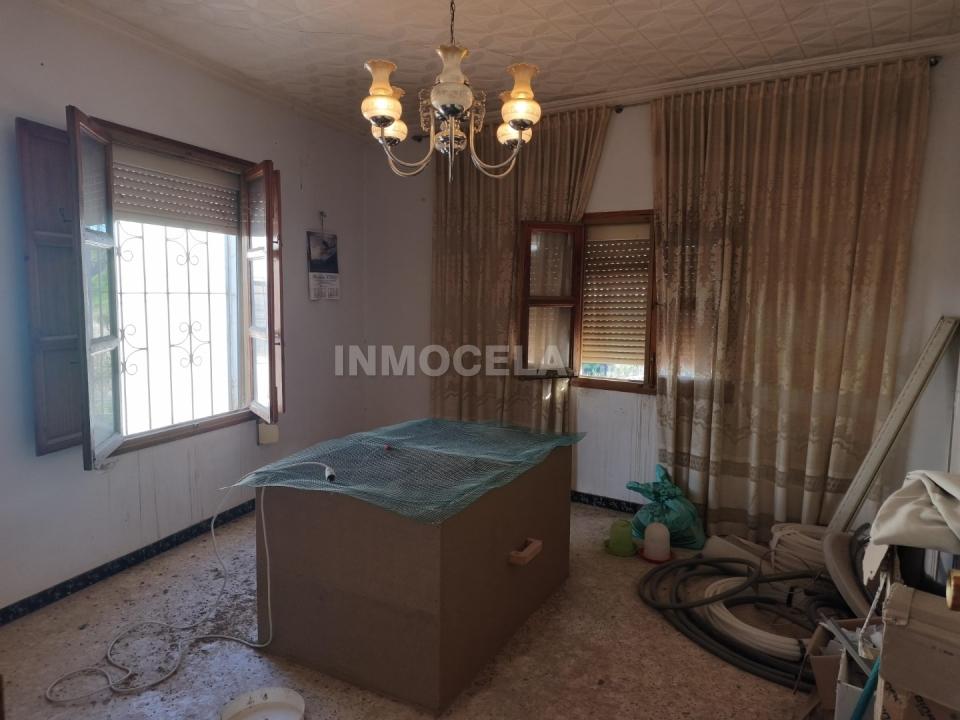 La vivienda principal se distribuye en una sola planta a la que accedemos a través de un pasillo central. A la izquierda encontramos una primera habitación que actualmente puede utilizarse como dormitorio, aunque también ofrece la posibilidad de convertirse en un comedor no muy grande o sala de estar adicional. A la derecha se sitúa otra habitación, seguida de una tercera estancia también a la izquierda, lo que permite configurar hasta tres dormitorios en esta planta según las necesidades del comprador.